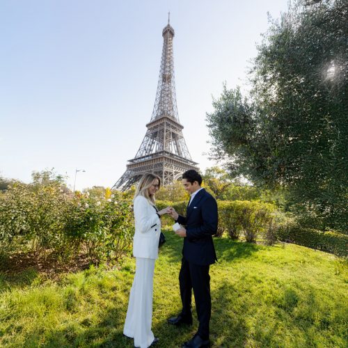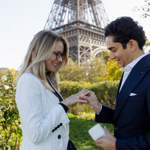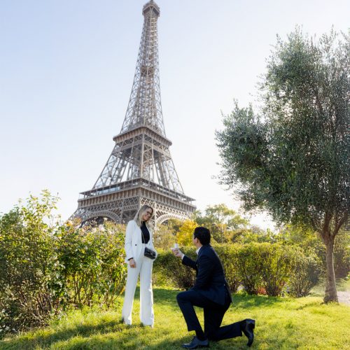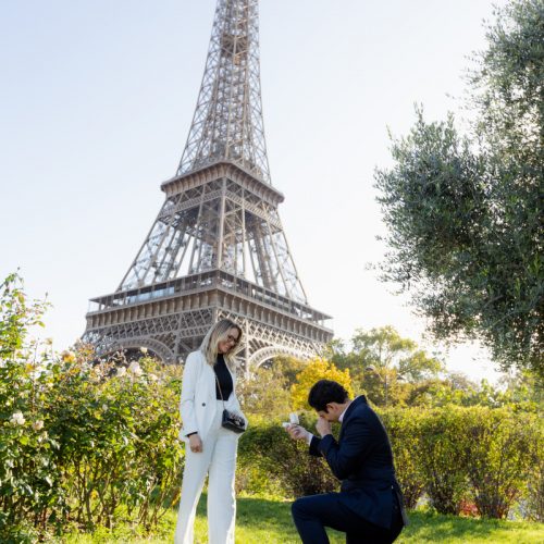 Pedido de casamento surpresa no gramado da Torre Eiffel em Paris