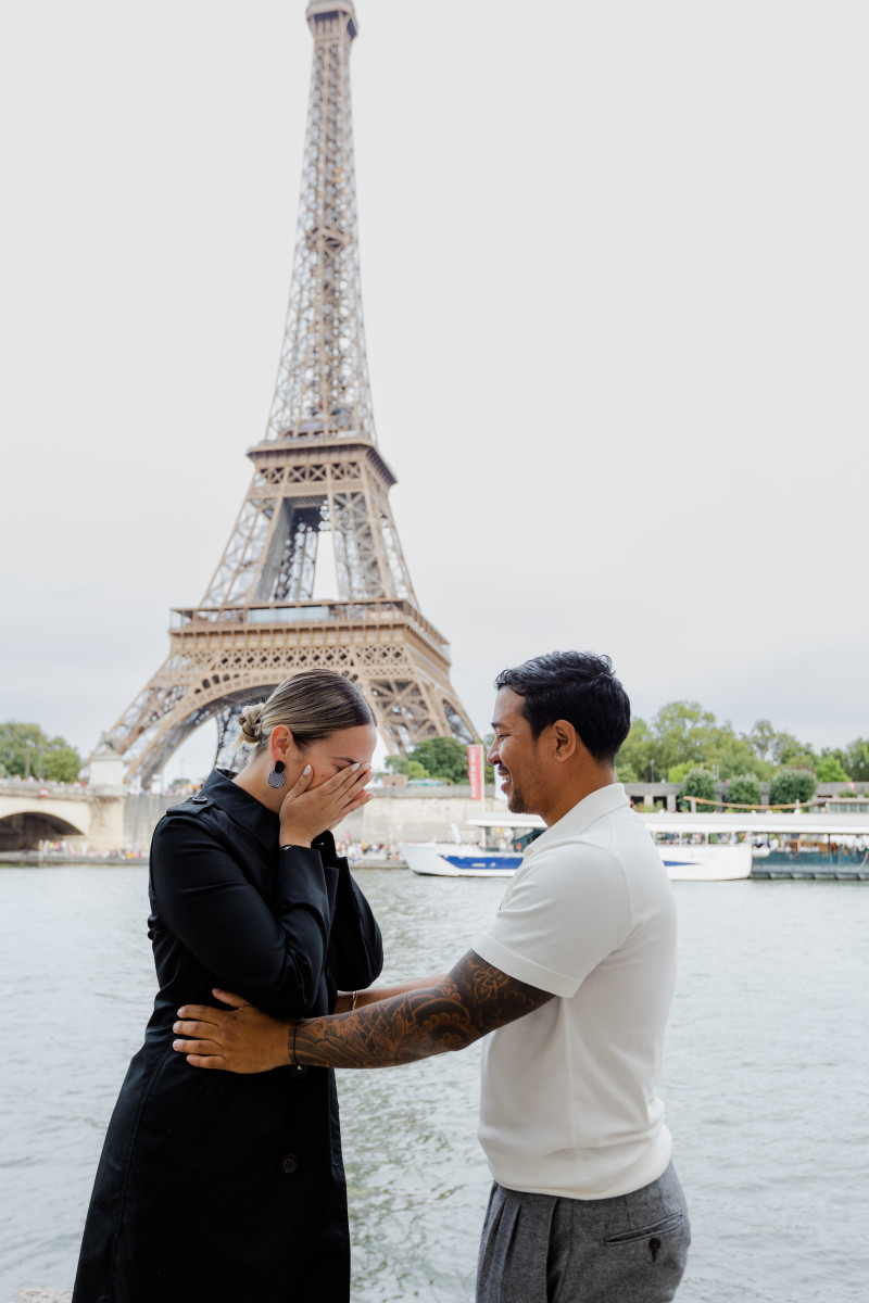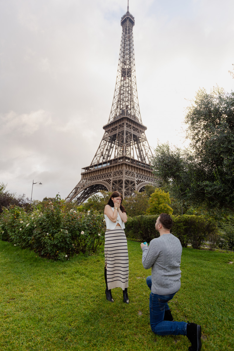 No pacote “Simplesmente Oui”, oferecemos duas opções de locais de fácil acesso: as margens do Rio Sena com a Torre Eiffel ao fundo ou o gramado próximo à Torre Eiffel. Ambos os locais garantem uma experiência íntima, sem a presença de turistas, permitindo que o pedido seja feito a qualquer hora do dia, sem interferência visual.